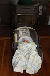 Friday February 1... All was calm in the morning... Windy and a dusting of snow on the ground... I don't think I slept at all last night... Mommom & Pop brought the kids over in the late morning. Lydia was a gassy beast and cried most of the time :( Daddy fixed it by going to Babies R Us for gas medicine. On the up side, she slept for 8 straight hours Friday night... Tired from all the fussing, I guess???