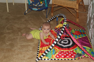 While we waited for her new BLUE strider bike to come in the mail, we figured we'd just try her on a real bike (no training wheels) and just see what would happen. I'll tell you what would happen - she would ride all by herself the very FIRST time!!! Guess strider bikes really do help with balance?!? She learned at the basketball courts in our neighborhood, just like Lucas. He loved helping her get started (now she can do it by herself), and Lydia just watched...