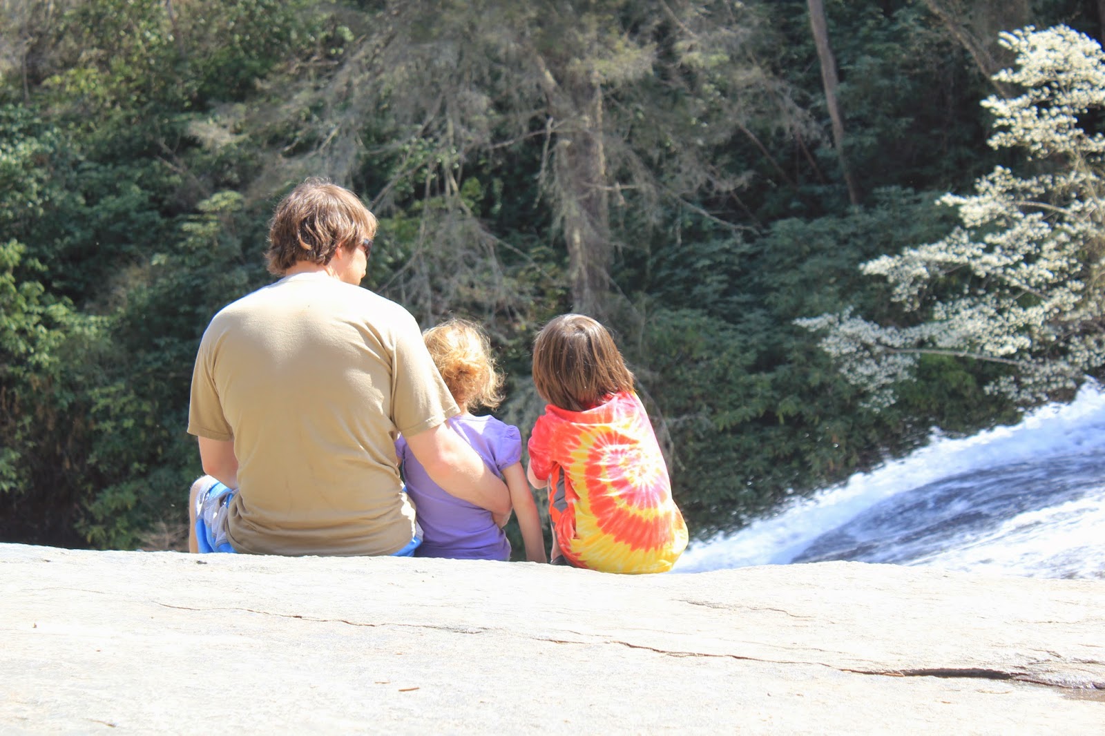 Wednesday, our last whole day there, we headed to Pisgah State Forest nearby. Tony wanted to see a different type of mountain biking, and there was a nature center and more waterfalls to explore. It was quite the off-road adventure to drop Tony at the trailhead, then we went to the nature center where we accidentally spent over 3 hours. It was super fun! Scavenger hunt for kids, wood blocks the kids built and baby knocked over, and lots of cool trails with things to see!