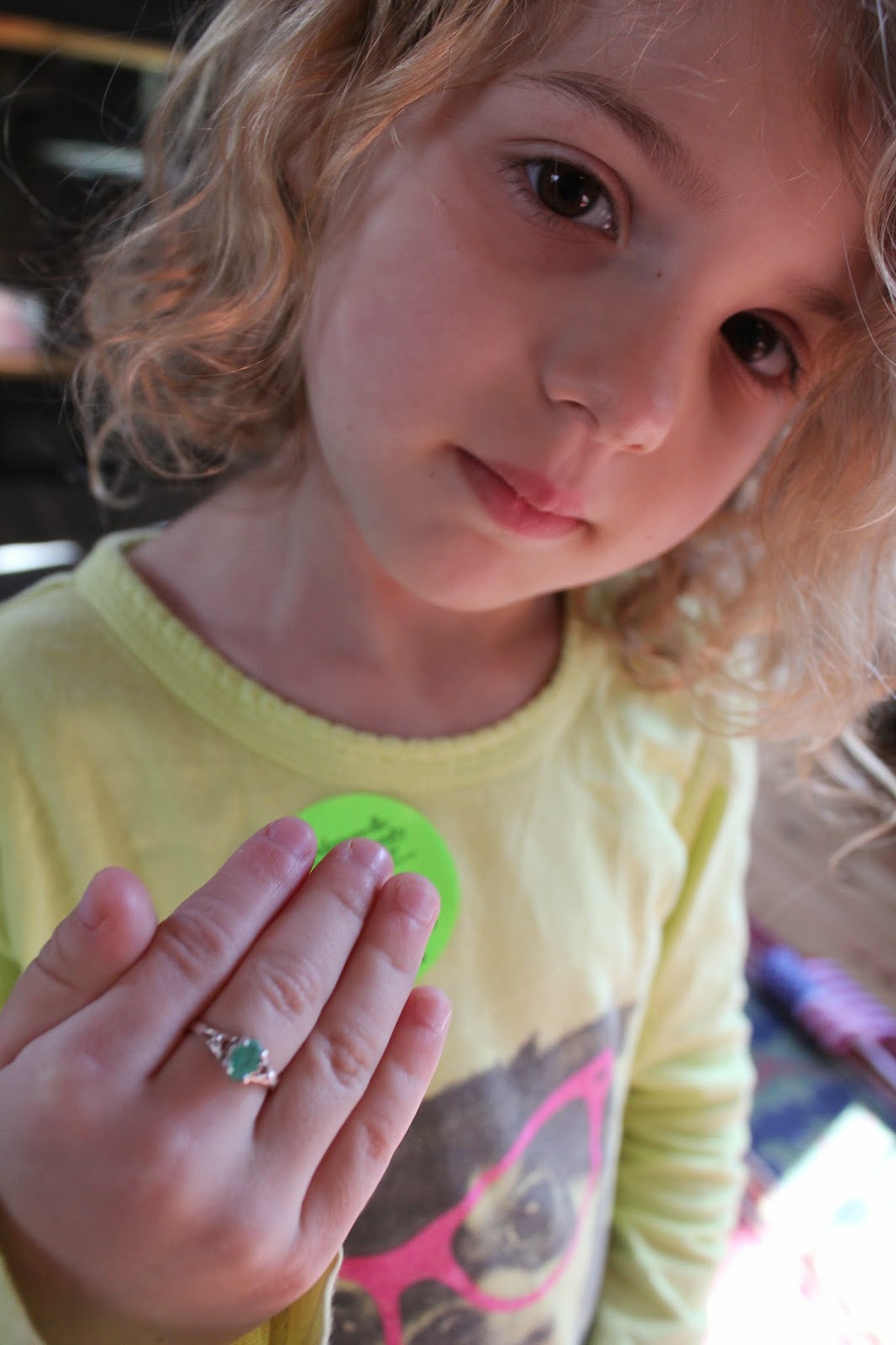 Tuesday it rained on and off all day, so we planned to go to nearby Hendersonville. Visited a few shops and had some Mexican for lunch. Charlotte got her very first "big girl ring" - an emerald (NC state gem). We went to a children's museum and had ice cream too! After town, Lucas went fishing for 5 minutes by himself and came back banging on the door that he caught one and needed help. Sure enough, he got a several pound trout. And the rule at the house pond was you had to keep trout. So, as not to be wasteful, we (Tony) cleaned it and we had it for dinner. Surprisingly, Lottie ate hers up quickly!
